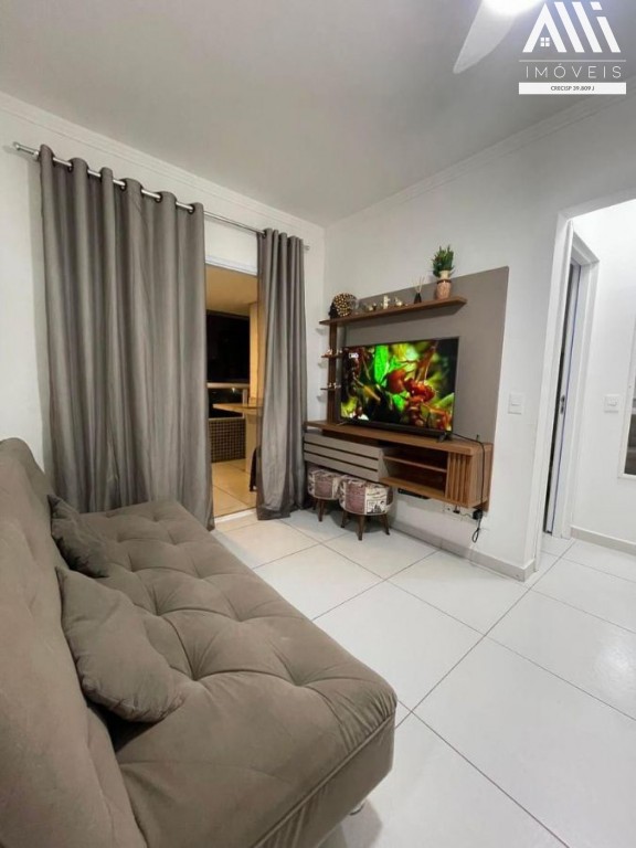 Apartamento em Praia Grande Vila Mirim, 2 Dormitórios sendo um suite, sala com 2 ambientes e varanda Gourmet, cozinha, área de serviço, banheiro social, 1 vaga de garagem, piscina, salão de festas, salão de jogos, brinquedoteca, academia, ótima localizaçã