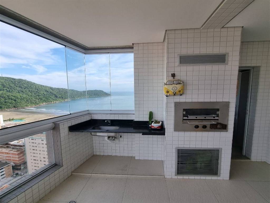 Apartamento Vista Mar no Canto do Forte, com 3 dormitórios sendo 2 suítes, varanda gourmet envidraçada, Porteira Fechada.Todos os cômodos climatizados. 2 vagas de garagem.Lazer : piscina adulto e infantil, churrasqueira, mercadinho, academia, playground,