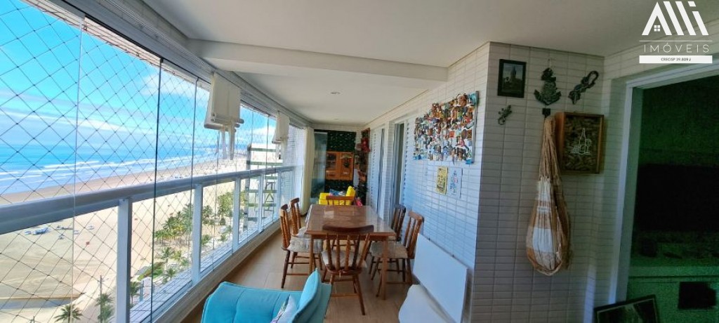 Belíssimo apartamento mobiliado no Canto do Forte, com 3 dormitórios, sendo 2 suítes, e uma varanda gourmet envidraçada em L, com vista para o mar definitivo.