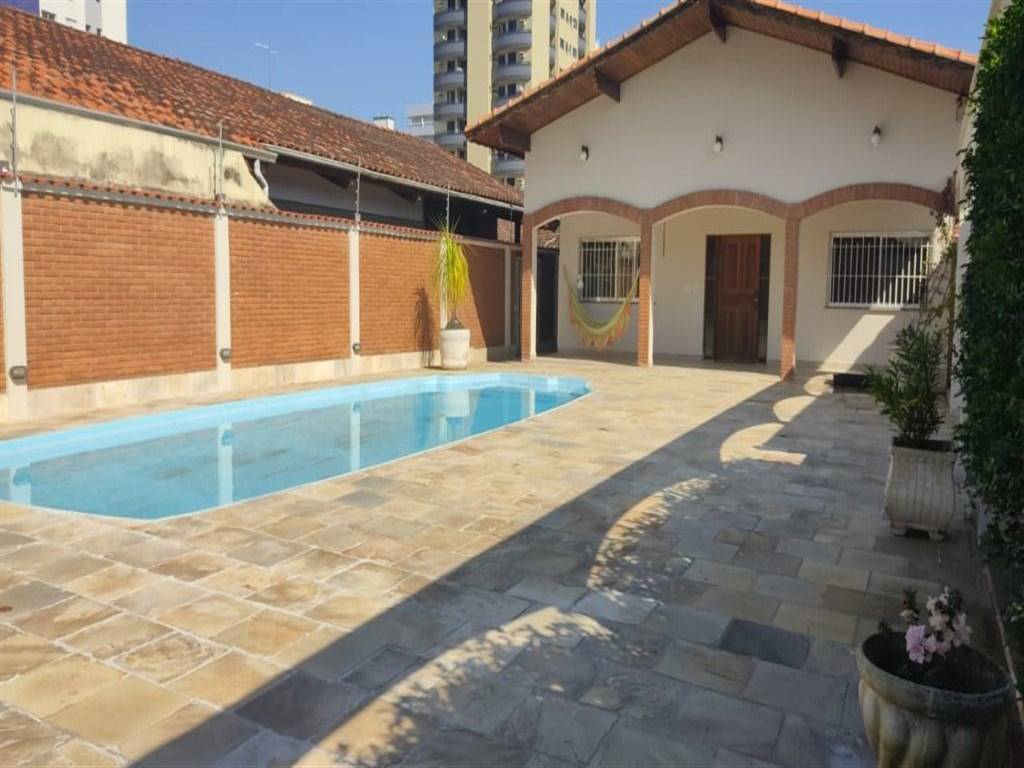 Casa isolada com 402 m² de área útil, terreno de 768 m², no bairro Flórida em Praia Grande, em zona Militar, com 4 suítes, espaço gourmet, salão de jogos, lavanderia, cozinha, sala tv, sala de jantar, com ar nos dormitórios e sala, garagem para 3 carros com portão automático, piscina, lavabo, escritório, dispensa, quarto de costura, parte social interna em porcelanato, quartos com armários embutidos e piso em madeira, armários nós banheiros e móveis planejados no espaço gourmet e cozinha.