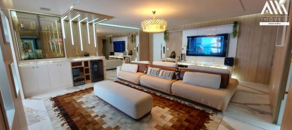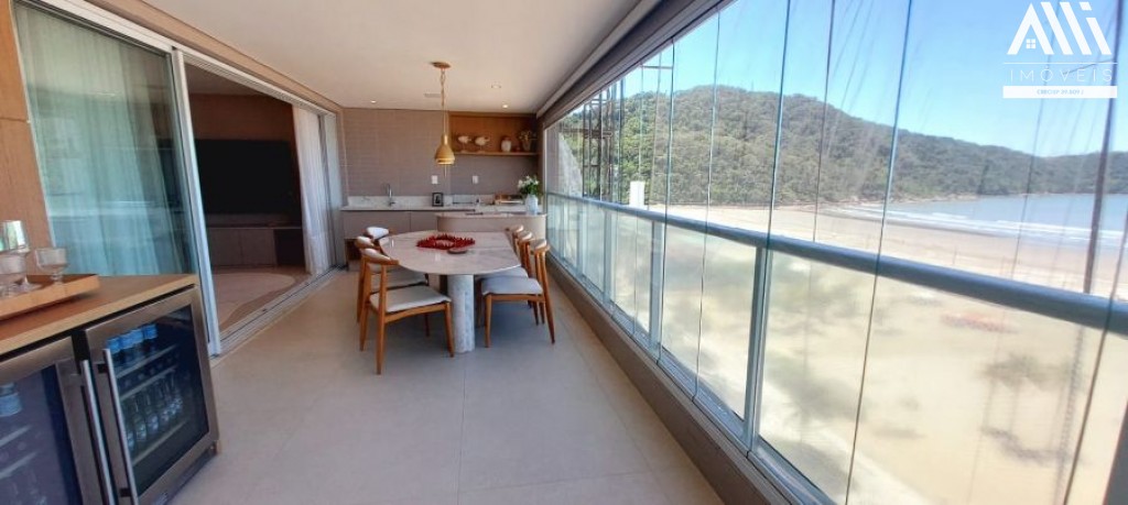 Com 04 dormitórios sendo 03 suítes, considerando que uma suíte master com closet( com possibilidade de colocar banheira), sala com sacada gourmet espaçosa envidraçada frente e vista mar, lavabo, cozinha com planejados, ar condicionado, Semi-mobiliado, dependência e wc de empregada.