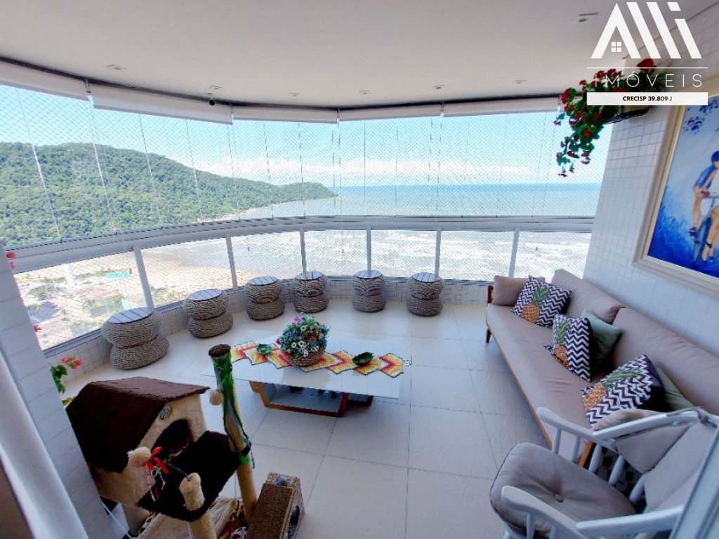 AP0059 - Apartamento Frente Mar no Canto do Forte com 4 DORMITÓRIOS (sendo 1 Suíte Master c/ Closet e Banheira de Hidromassagem) e sendo 2 suítes, sala com 3 ambientes, varanda gourmet com vista MAR, wc social, cozinha, área de serviço. Possui móveis pl
