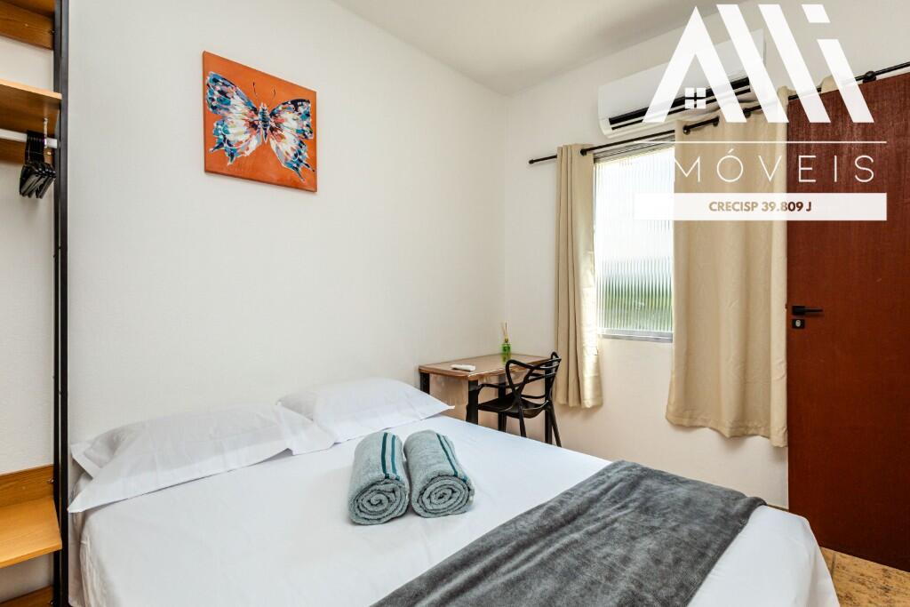 Sendo 1 dormitório, 1 cozinha, 1 sala, 1 banheiro com box de vidro