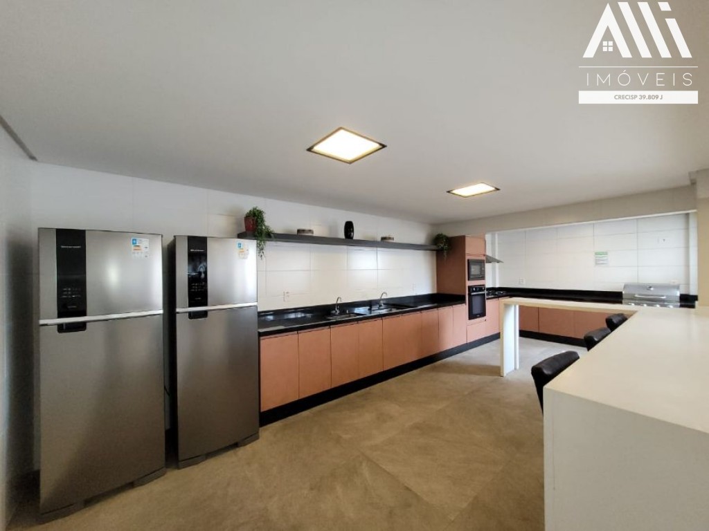 3 dormitórios sendo 3 suítes com ar condicionado, sala 2 ambientes com ar condicionado e varanda gourmet envidraçada, lavabo, cozinha americana integrada com sala, área de serviço, área técnica, 2 vagas de garagem demarcadas.