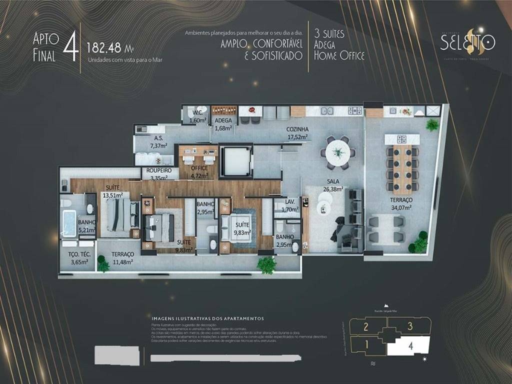 Localizado em uma das regiões mais valorizadas da cidade, o apartamento proporciona fácil acesso a praias, comércios, escolas e serviços essenciais. Além disso, conta com três vagas de garagem, elevadores social e de serviço, e total acessibilidade, pensando no bem-estar de todos os moradores.