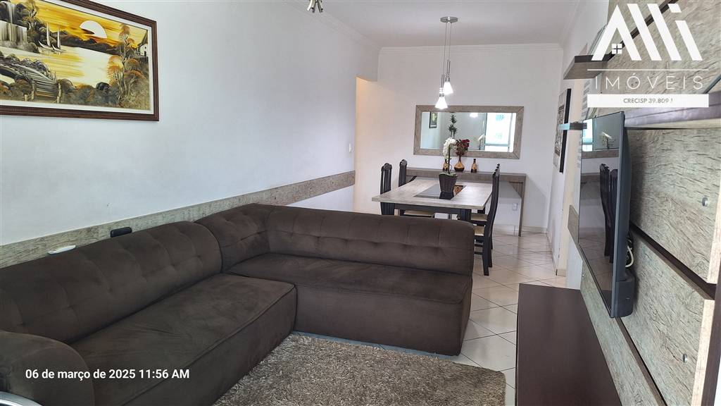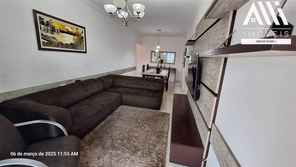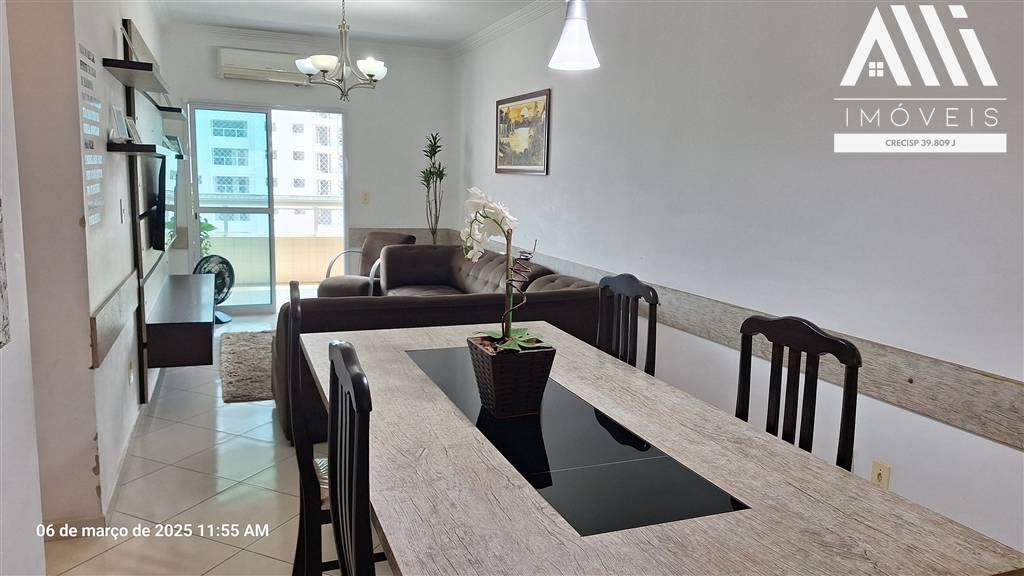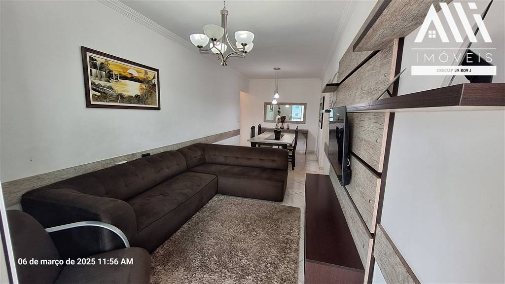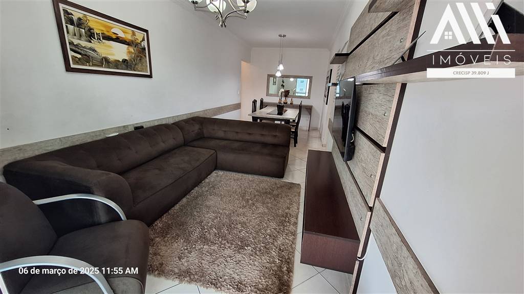 Apartamento 2 dormitórios sendo 1 suíte, Vila Guilhermina, Praia Grande, ampla sala dois ambientes, sacada em L envidraçada e com churrasqueira a carvão raiz, cozinha planejada, muito bem ventilado e iluminado.