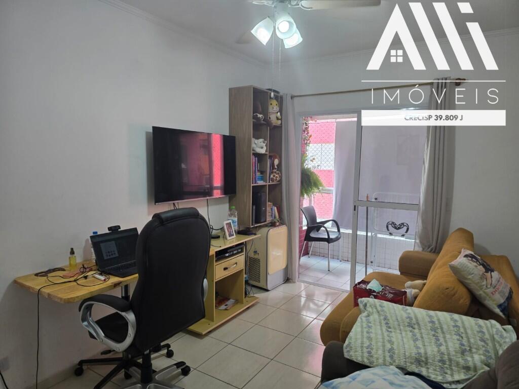 Apartamento no Canto do Forte, 1 quadra da praia, 1 dormitório, sala com sacada gourmet, banheiro, cozinha, área de serviço e 1 vaga de garagem. Prédio com piscina e salão de festas. Ótima localização, próximo de escolas, mercados, padarias, correios, e a uma quadra da praia.