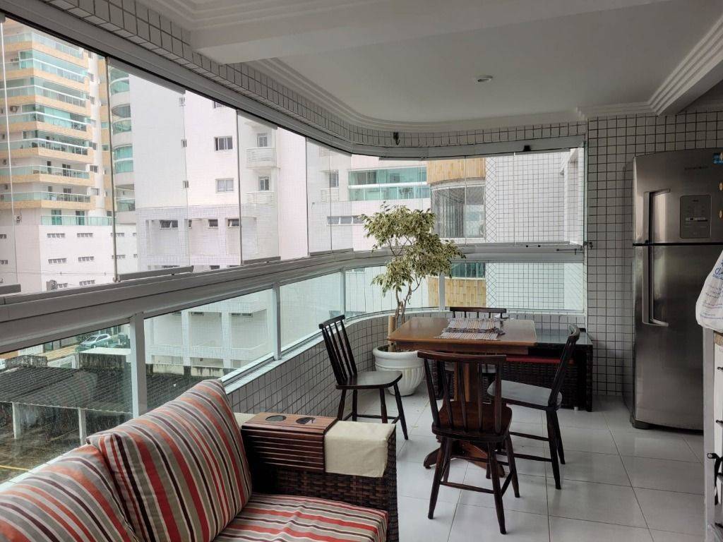 Apartamento com 02 dormitórios sendo 01 suite, banheiro social, sala com sacada gourmet e fechamento de vidraça com pequena vista do mar, cozinha com planejados, area de serviço e 01 vaga de garagem. Prédio com acessibilidade, piscina, sauna umida e seca, pet shower, academia e salão de festas. Localizado a 03 quadras da praia próximo de restaurantes, padaria, mercados, escolas, sorveterias e lojas.