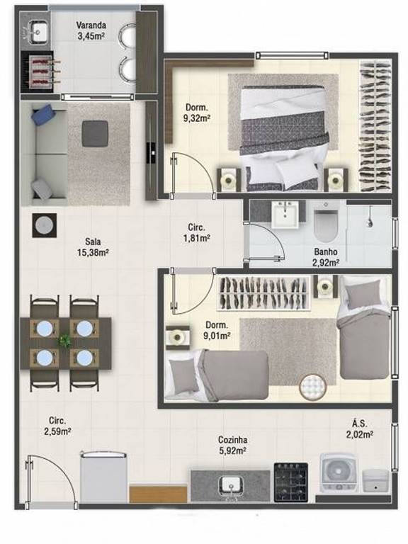 Área Útil55,00m²