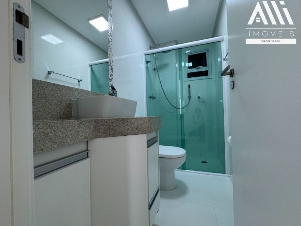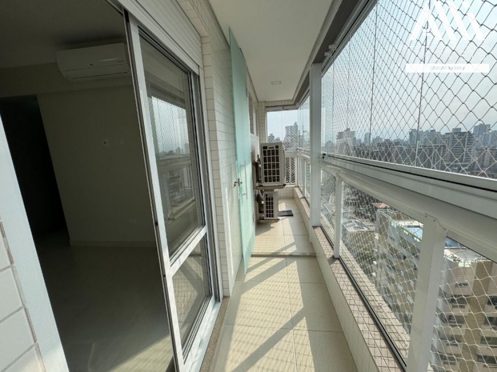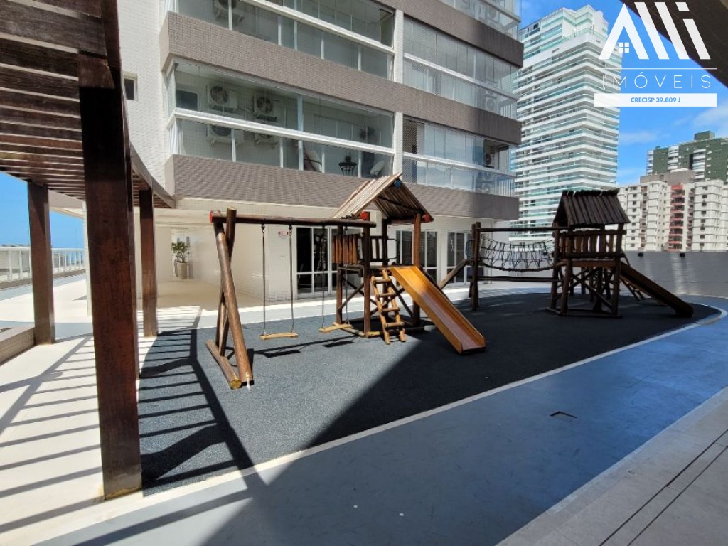 3 dormitórios sendo 02 suítes com ar condicionado, sala 2 ambientes com ar condicionado e varanda gourmet envidraçada com vista Mar, cozinha com planejados, área de serviço e 2 vagas demarcadas.