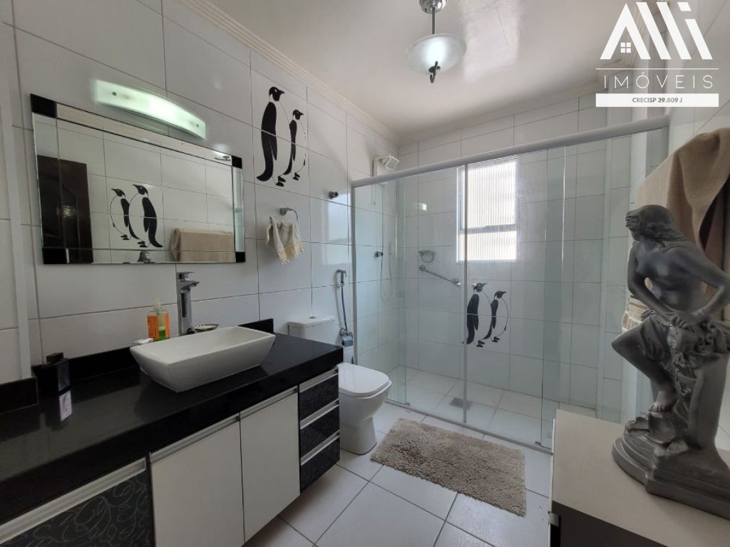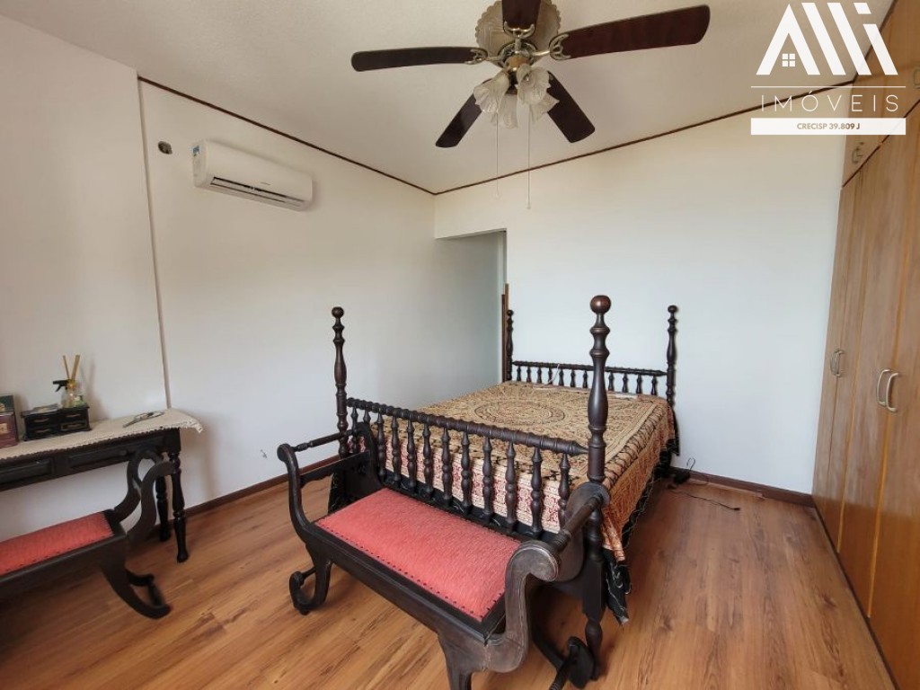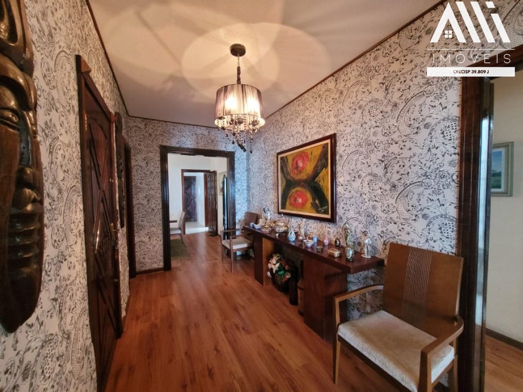 No piso inferior, hall de entrada com elevador privativo com uma ante sala, 3 dormitórios sendo 1 suíte com ar condicionado, banheiro social, sala ampla com 2 ambientes com sacada, sala de jantar, cozinha, área de serviço com banheiro e dependência de empregada.
