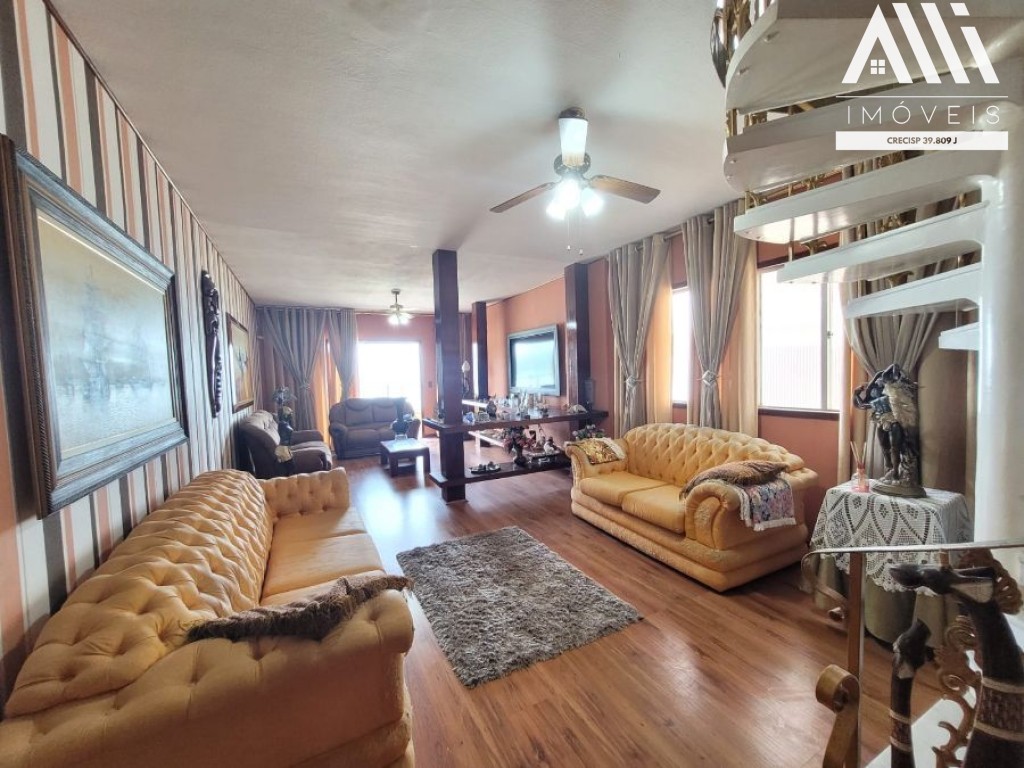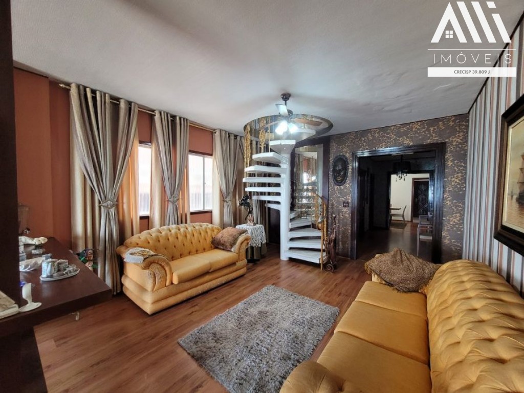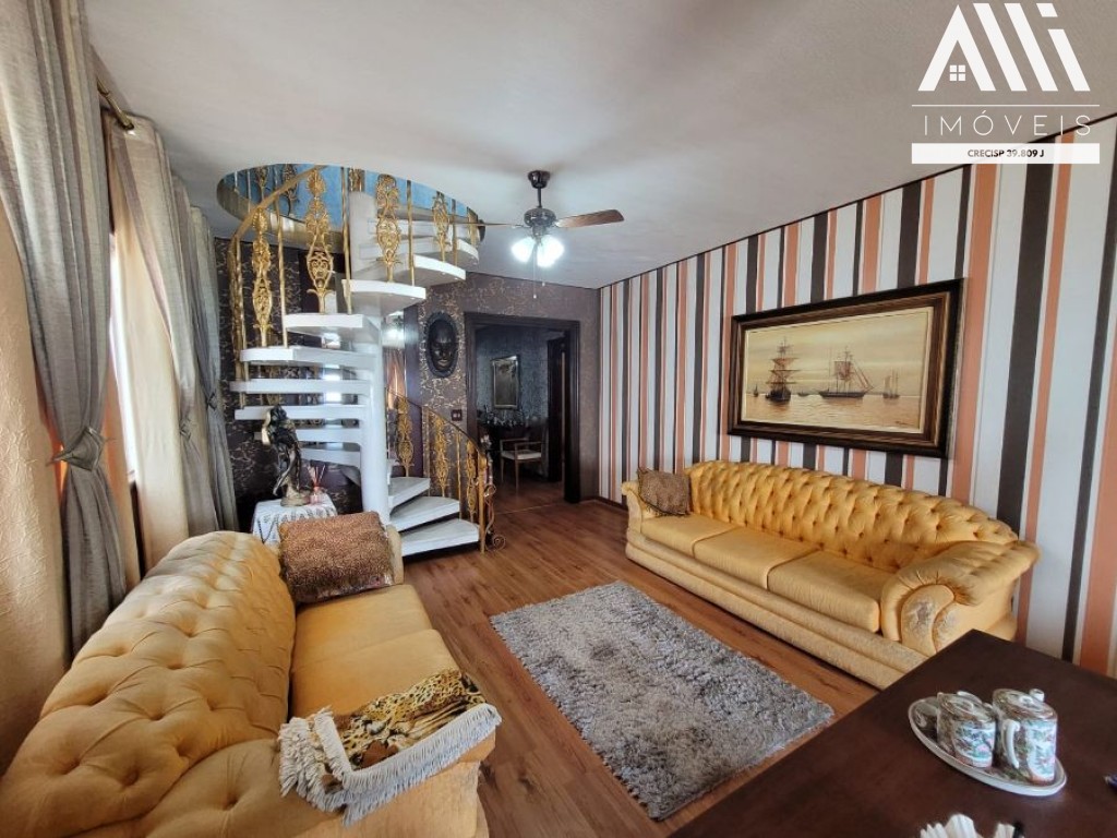 No piso superior, 1 suíte, sala com 2 ambientes com sacada, salão de festas, lavanderia com banheiro.