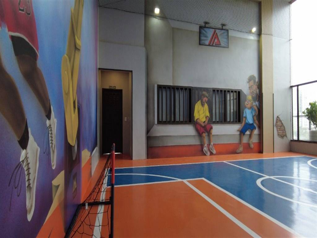Prédio com piscina adulto e infantil, salão de jogos, salão de festas, brinquedoteca, academia e mini quadra.