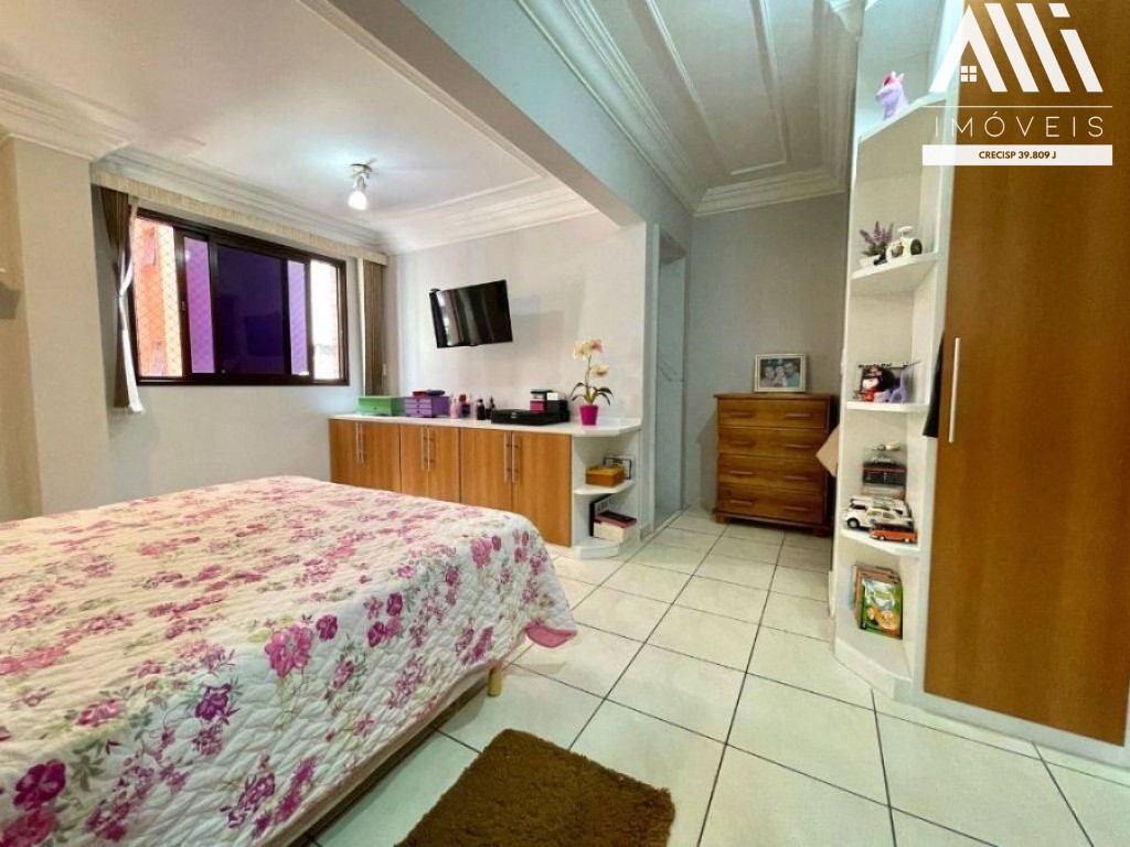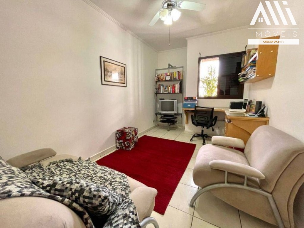 Tem 4 dormitórios, sendo 1 suíte com banheira de hidromassagem, mais 2 banheiros. Sala com 2 ambientes, sala de jantar, escritório, cozinha com 2 ambientes (copa), lavanderia com wc serviço. O prédio possui piscina recém reformada com área grande (breve construção churrasqueira), academia, sauna, salão de festas e salão de jogos.