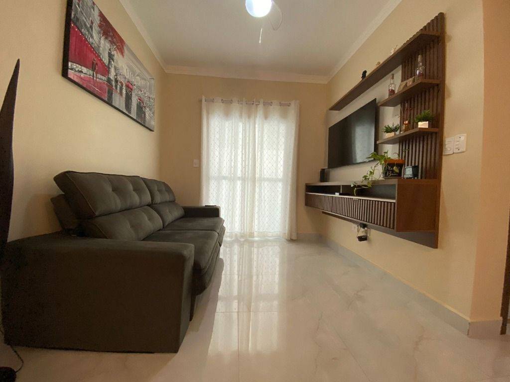 Apartamento com 02 dormitórios sendo 01 suite, banheiro social, sala com sacada gourmet e fechamento de vidraça com pequena vista do mar, cozinha com planejados, area de serviço e 01 vaga de garagem. Prédio com acessibilidade, piscina, sauna umida e seca, pet shower, academia e salão de festas. Localizado a 03 quadras da praia próximo de restaurantes, padaria, mercados, escolas, sorveterias e lojas.