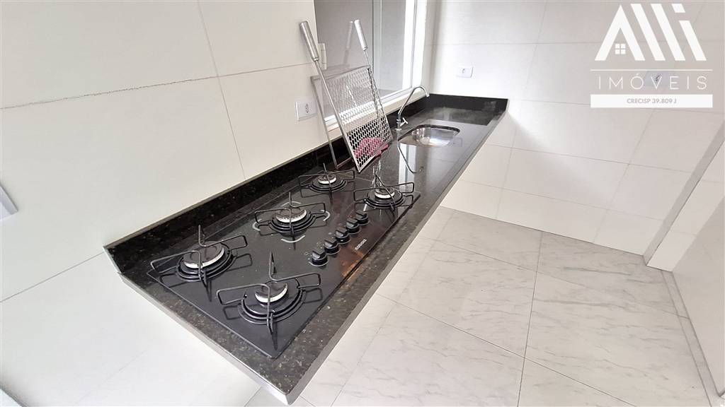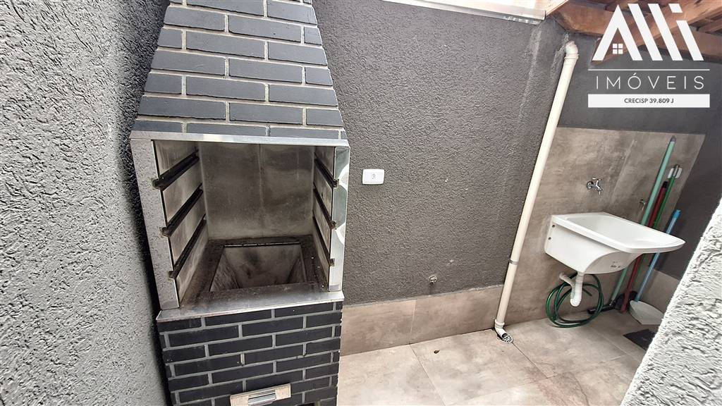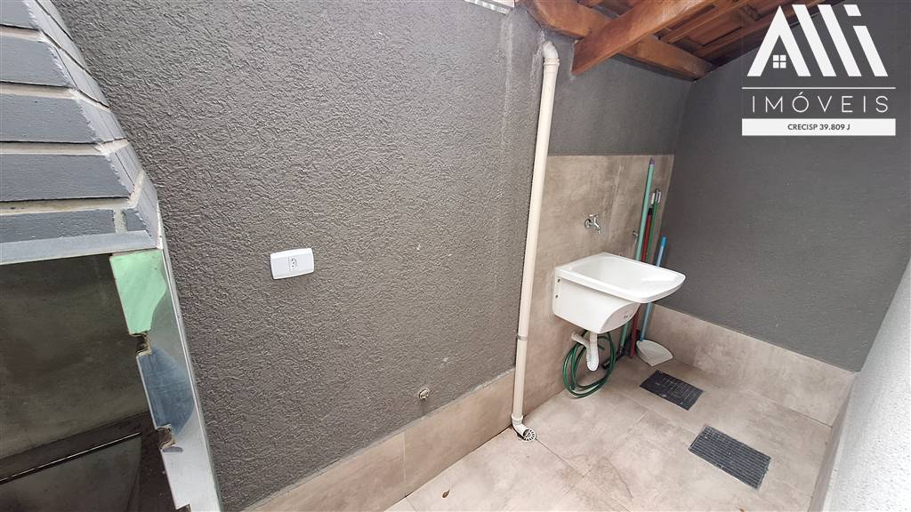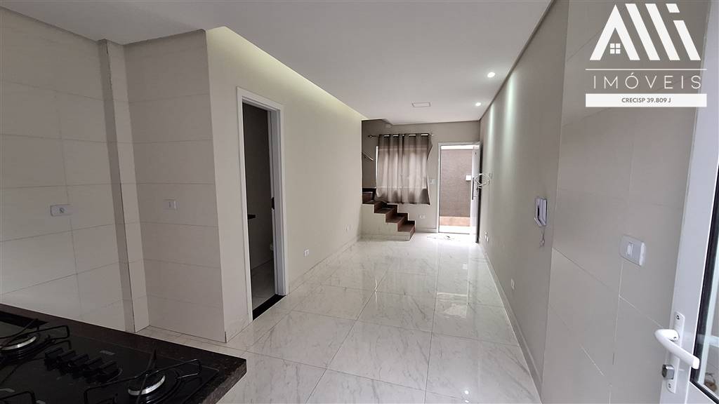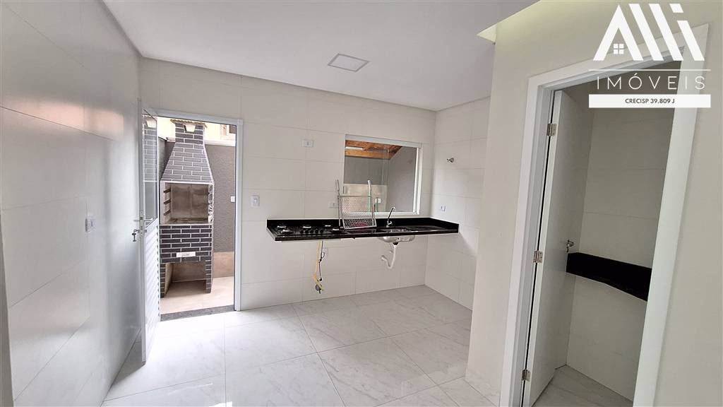 Sobrado em condominio na Aviação, Praia Grande, com 2 dormitórios, banheiro, sala com lavabo e cozinha integrada, lavanderia com churrasqueira.