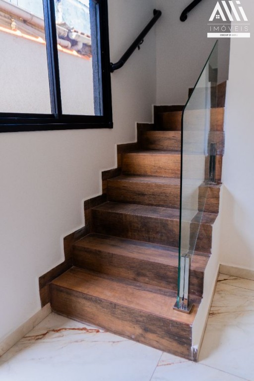 Fino acabamento com piso em porcelanato, Sanca de gesso na sala, Escadaria com corrimão.