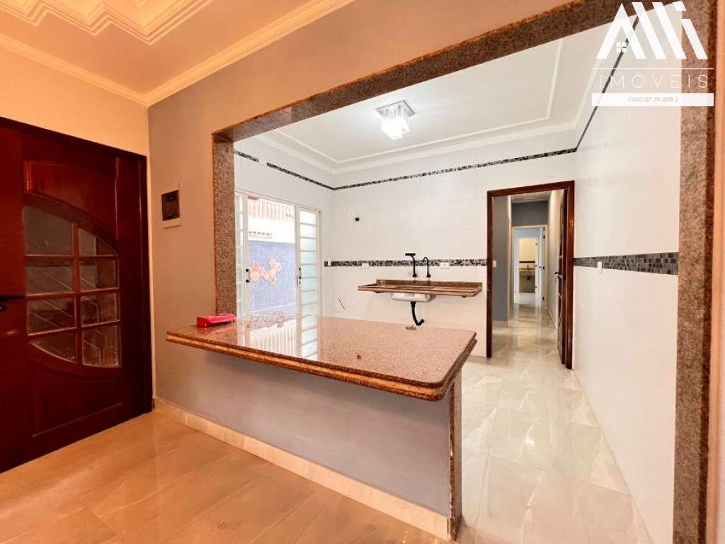 Sendo 2 quartos (1 suíte), sala ampla e integrada com a cozinha com balcão americano, lavabo