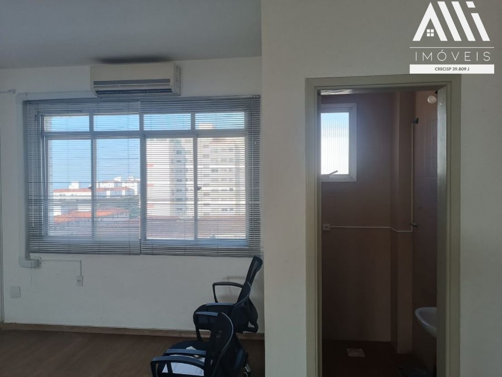 Sala com 2 banheiros em prédio comercial no coração do Boqueirão de Praia Grande-SP, prédio com portaria e 2 elevadores .